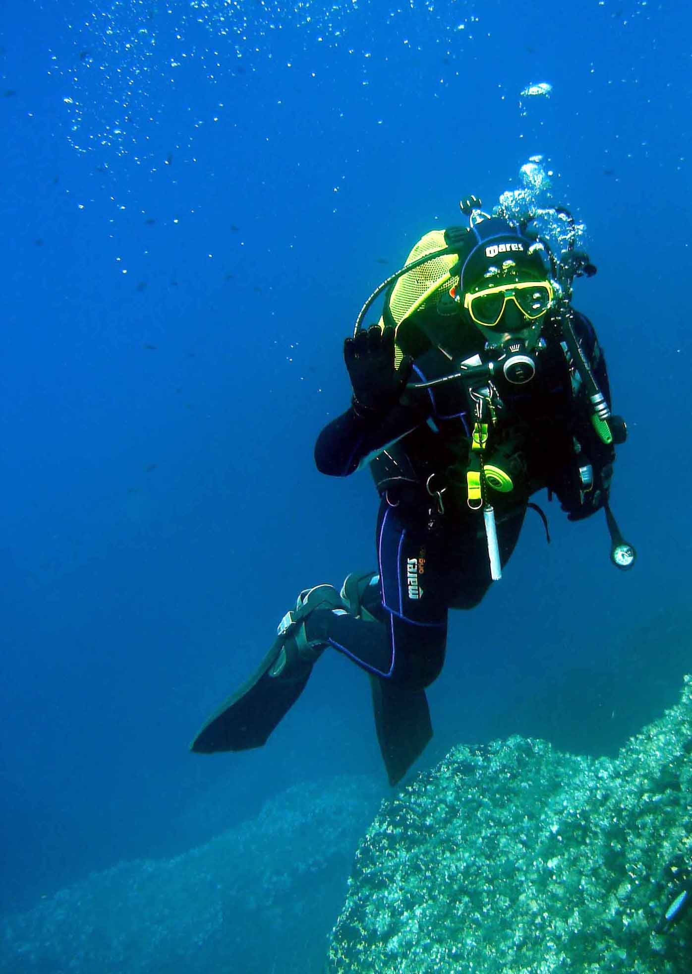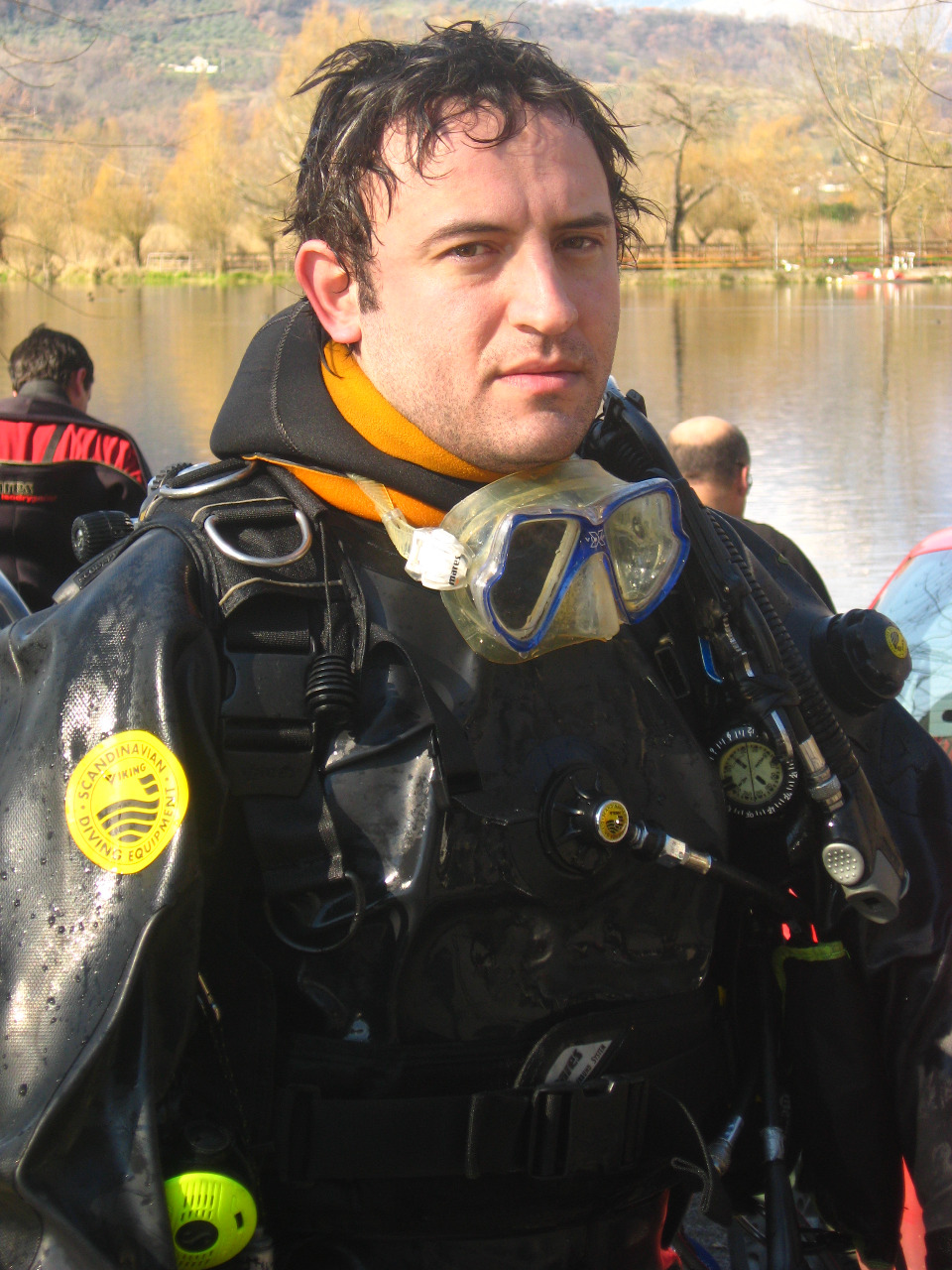 Negli anni continua a rincorrere i pesci alla ricerca di qualche tesoro nascosto, nel 1995 inizia la sua prima esperienza con la respirazione subacquea frequentando un corso per sommozzatore di Protezione Civile, dove nel 1997 diventa Assistente Istruttore del gruppo sommozzatori AFI .